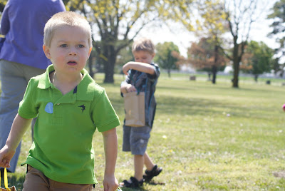 The kids begged the dads and grandpas to play kick ball after the Easter activities wrapped up. They had a rousing game going - shoes were flying and everything!